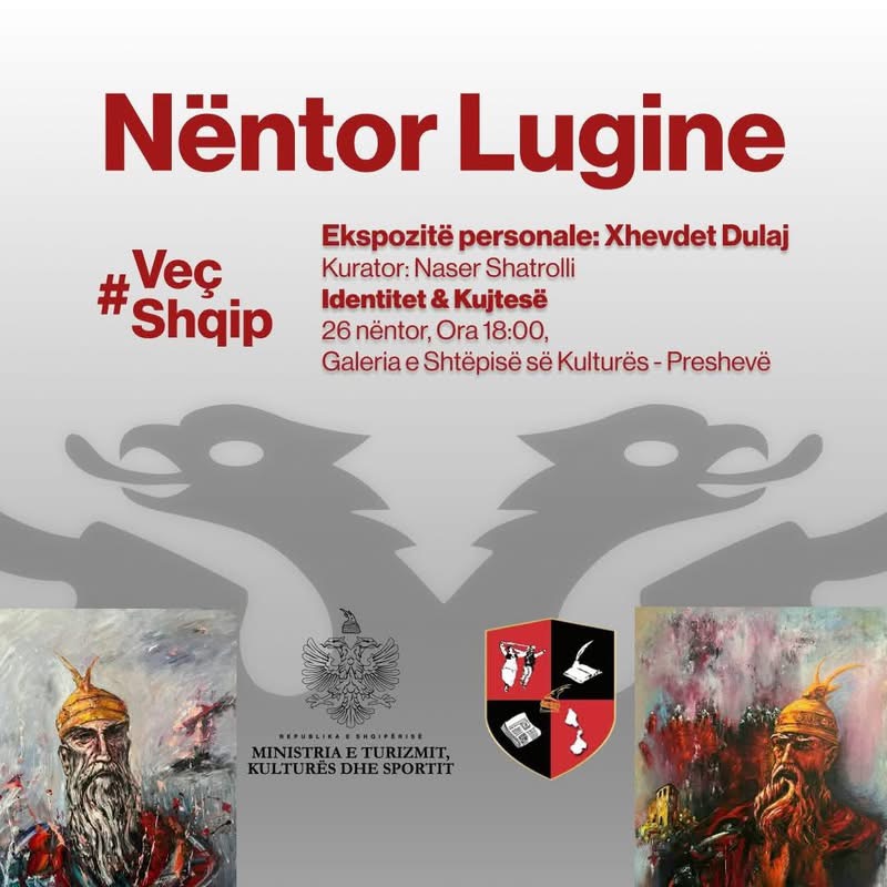 Në kuadër të programit Nëntor Luginë – Veç Shqip, hapet ekspozita personale “Identitet & Kujtesë”, kuruar nga Naser Shatrolli, një prezantim që sjell thellësinë e artit, historisë dhe identitetit tonë kombëtar.