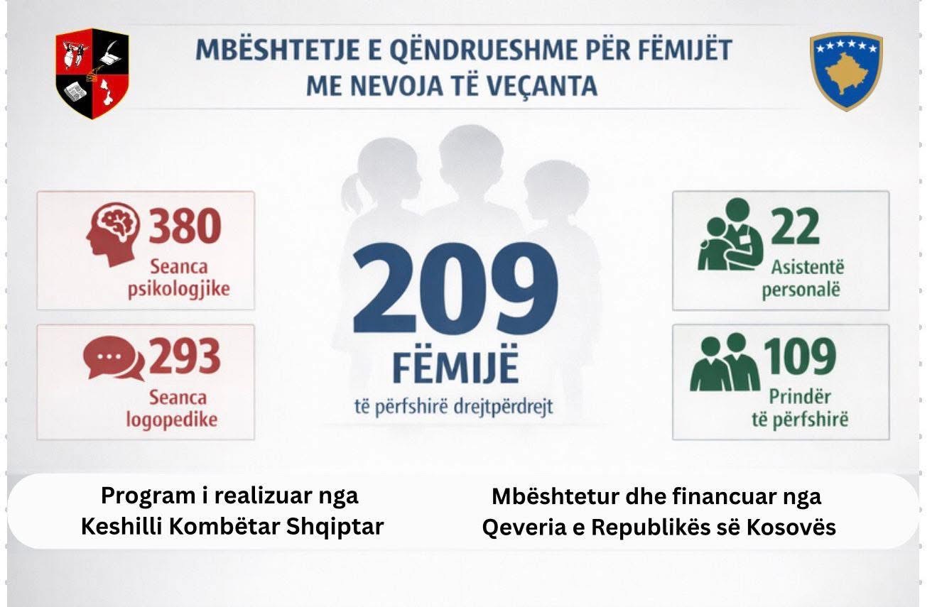 Gjatë vitit 2025, Këshilli Kombëtar Shqiptar ka përfshirë drejtpërdrejt 209 fëmijë me nevoja të veçanta në programet e tij mbështetëse.